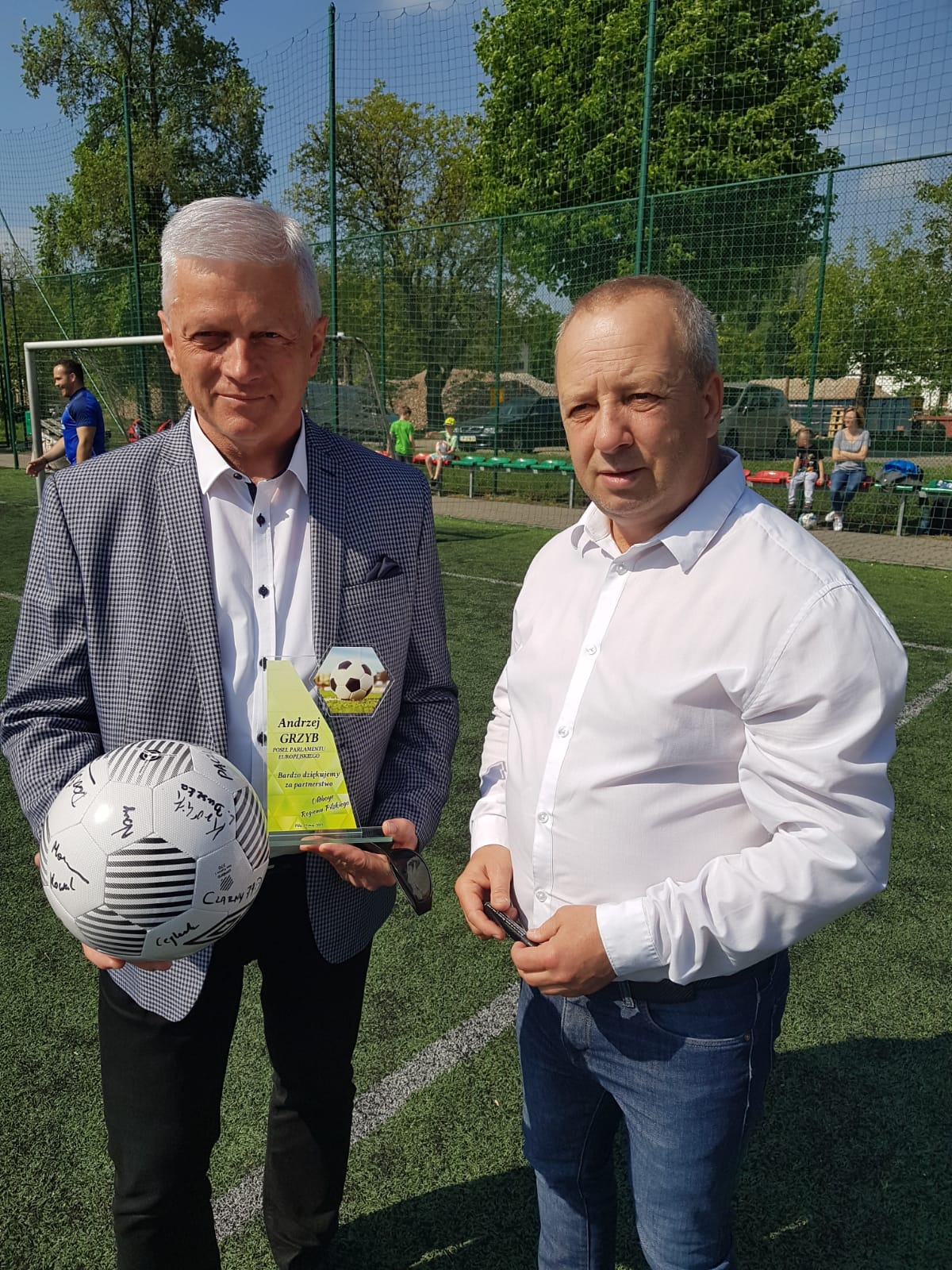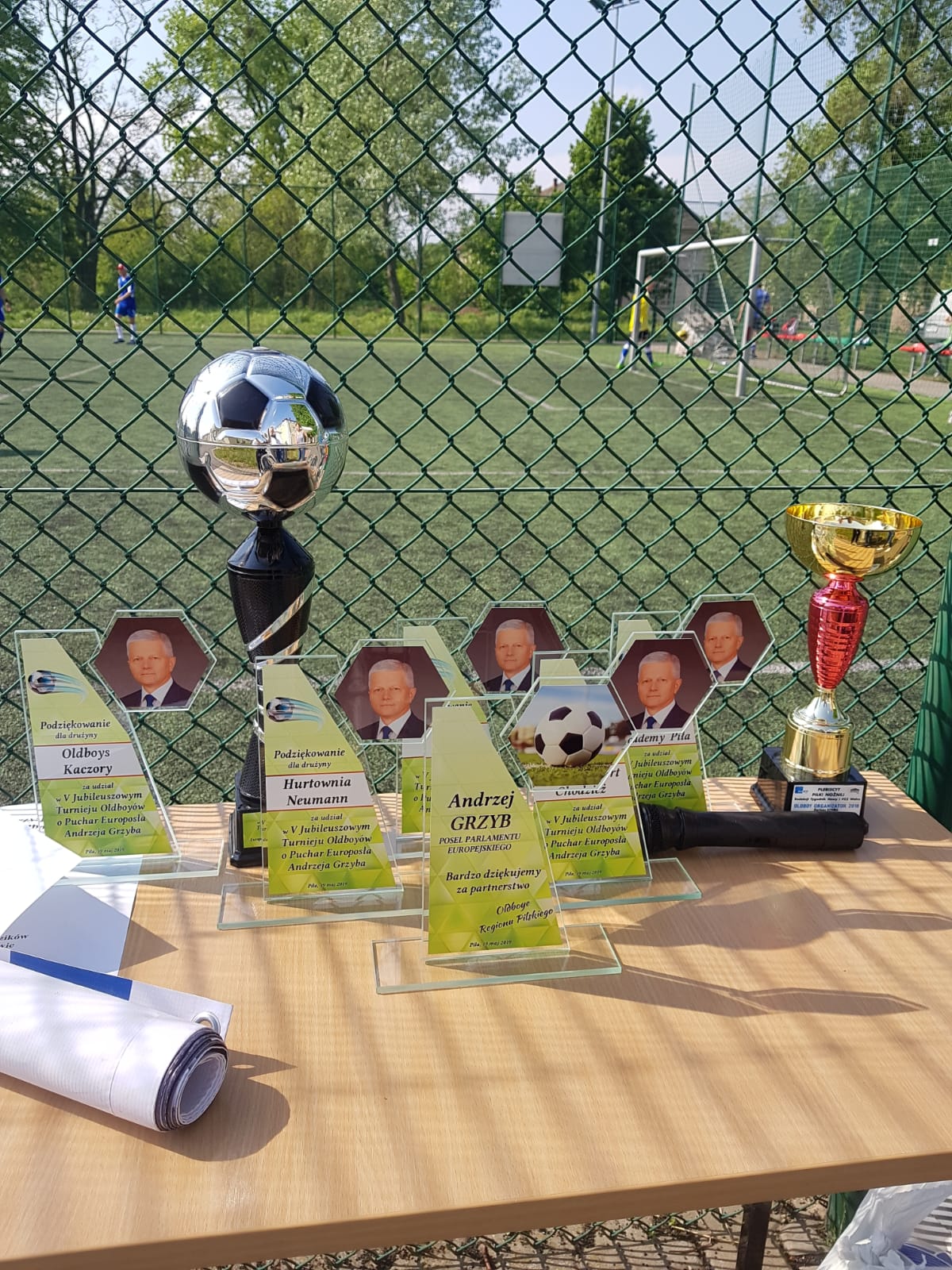 W ubiegłą niedzielę w Pile po raz piąty odbył się turniej piłki nożnej o puchar dr Andrzeja Grzyba Posła do Parlamentu Europejskiego. Poseł osobiście rozpoczął turniej, w którym udział wzięło 5 drużyn. Organizator Mariusz Markowski przygotował serdeczne podziękowania dla Posła Andrzeja Grzyba za objęcie patronatem a statuetkę wręczył Pan Wiesław Powalisz. Zwycięski puchar powędrował do drużyny z Kaczor. Gratulujemy wszystkim drużynom a w szczególności wygranym.