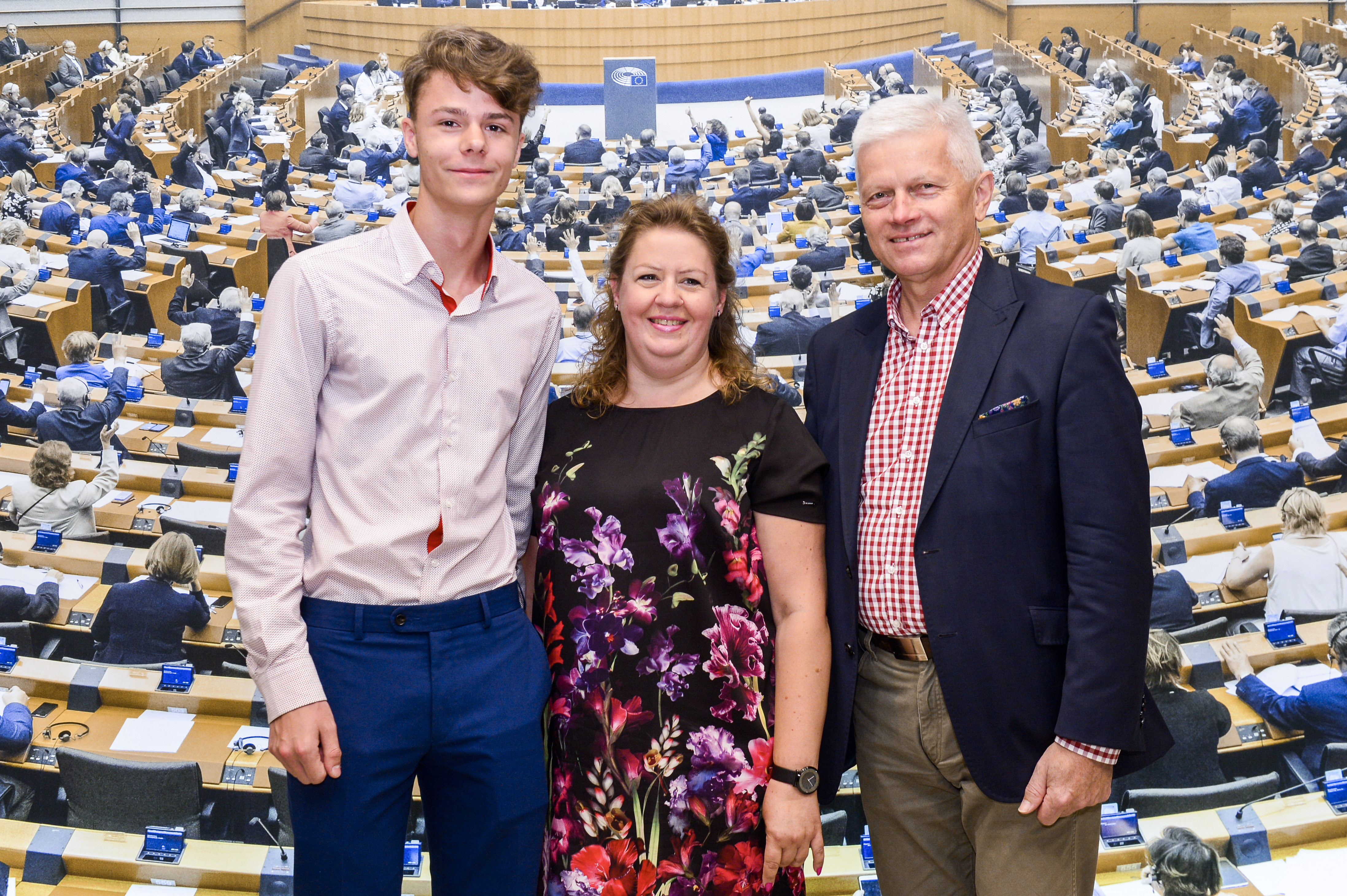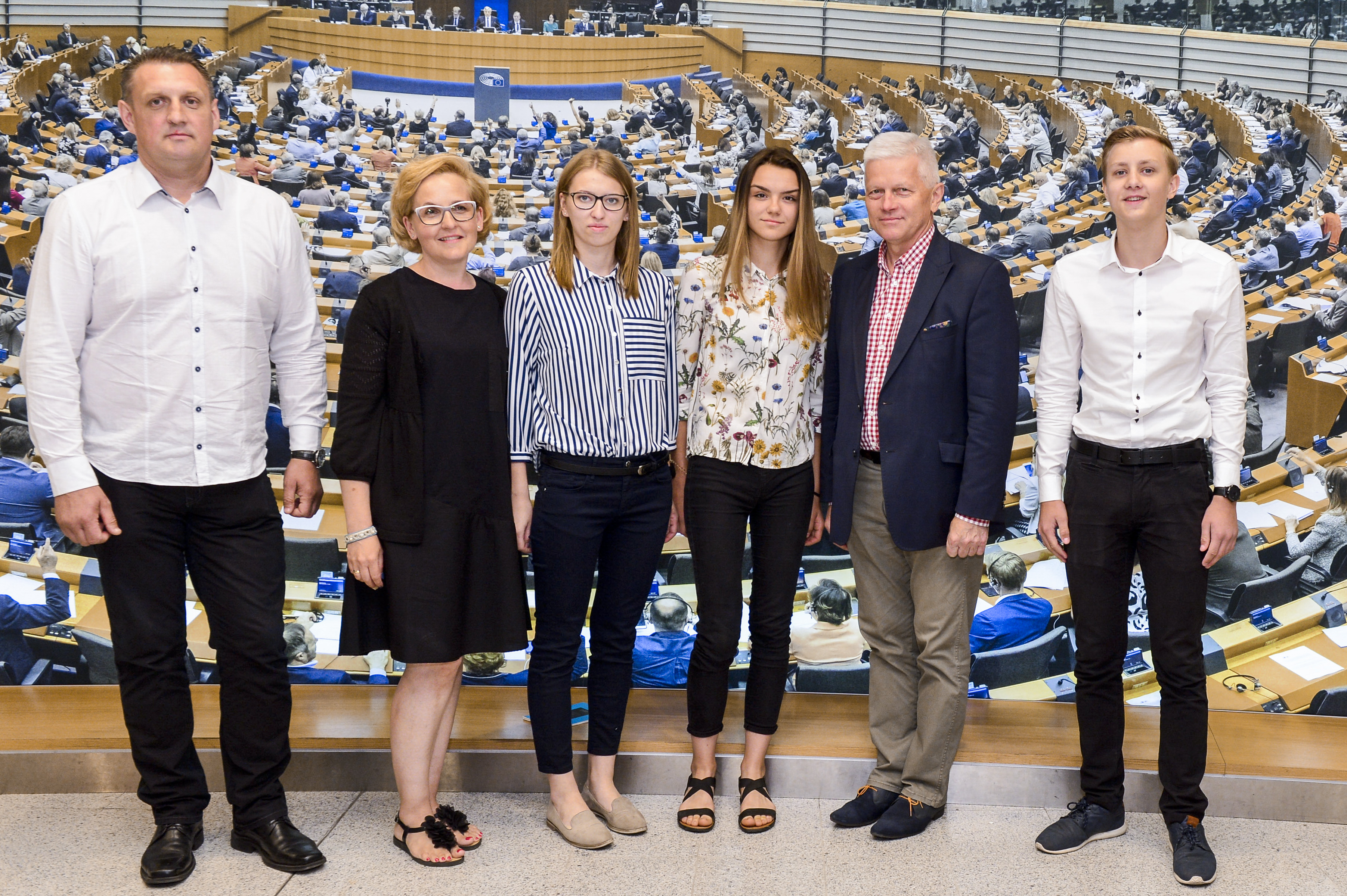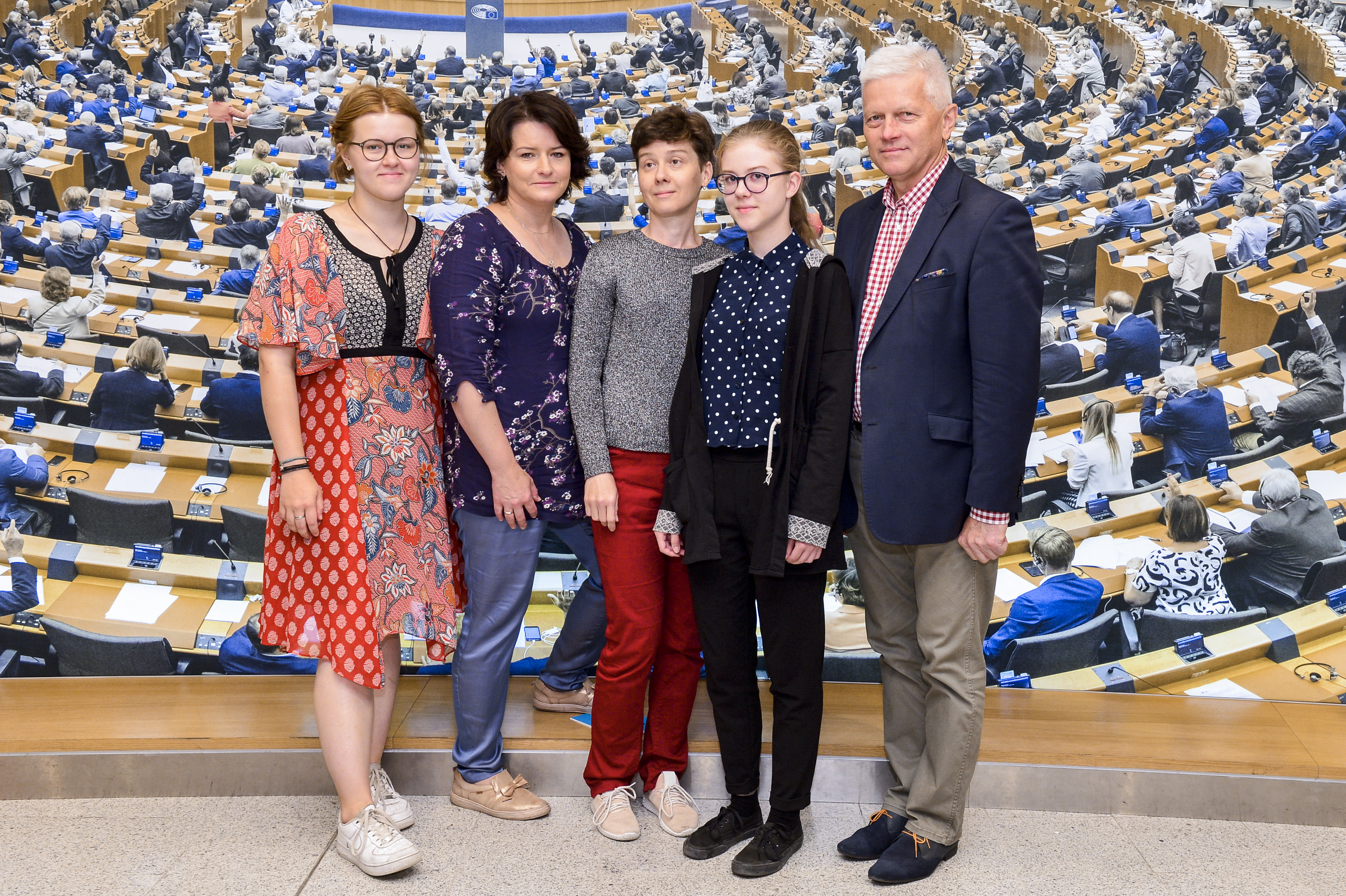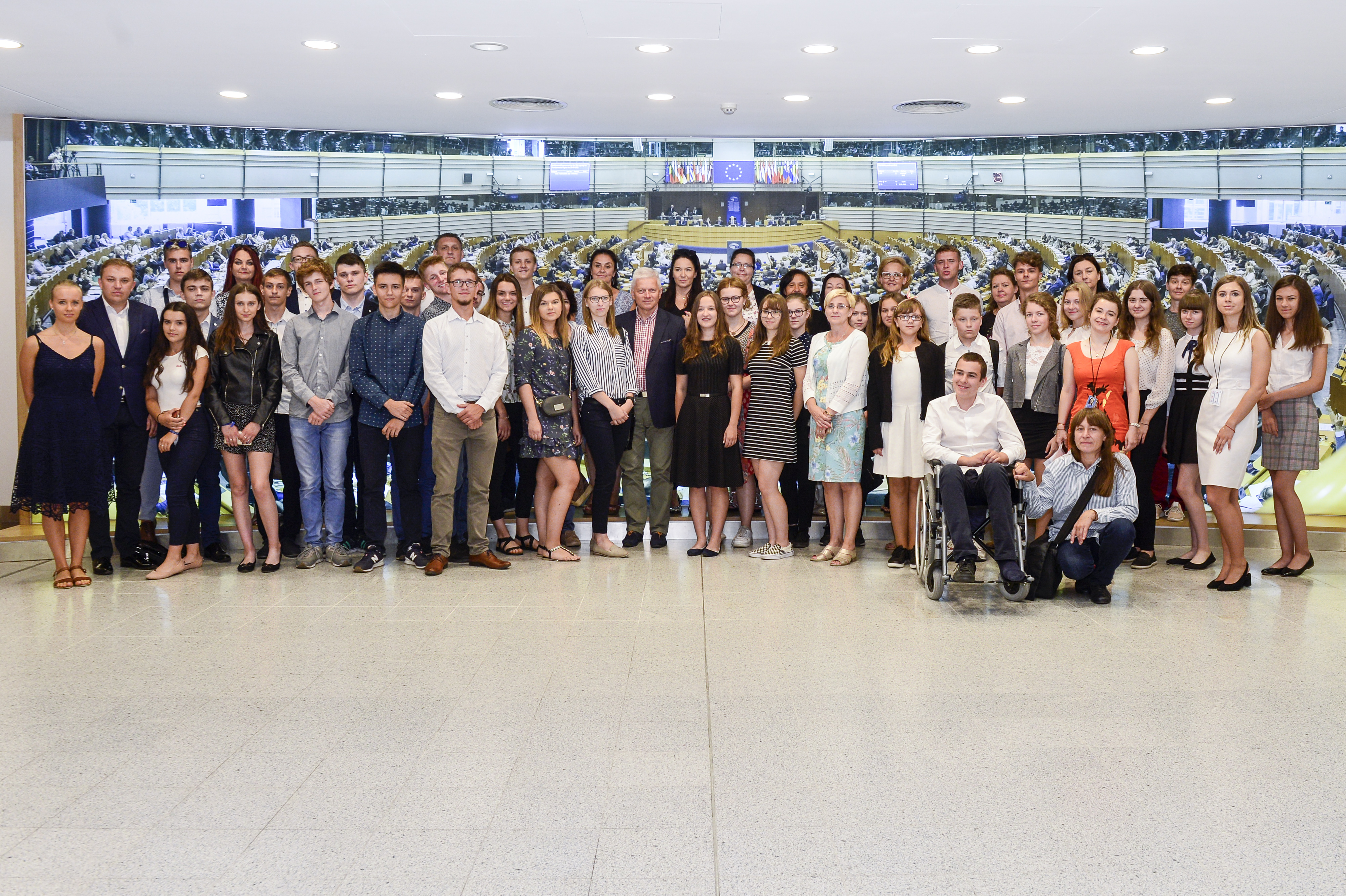 Wizytę w Parlamencie Europejskim rozpoczęli pamiątkowym wspólnym zdjęciem z posłem Andrzejem Grzybem. Następnie grupa wysłuchała wykładu na temat funkcjonowania Unii Europejskiej i jej instytucji oraz zwiedziła Galerię Sali Plenarnej.