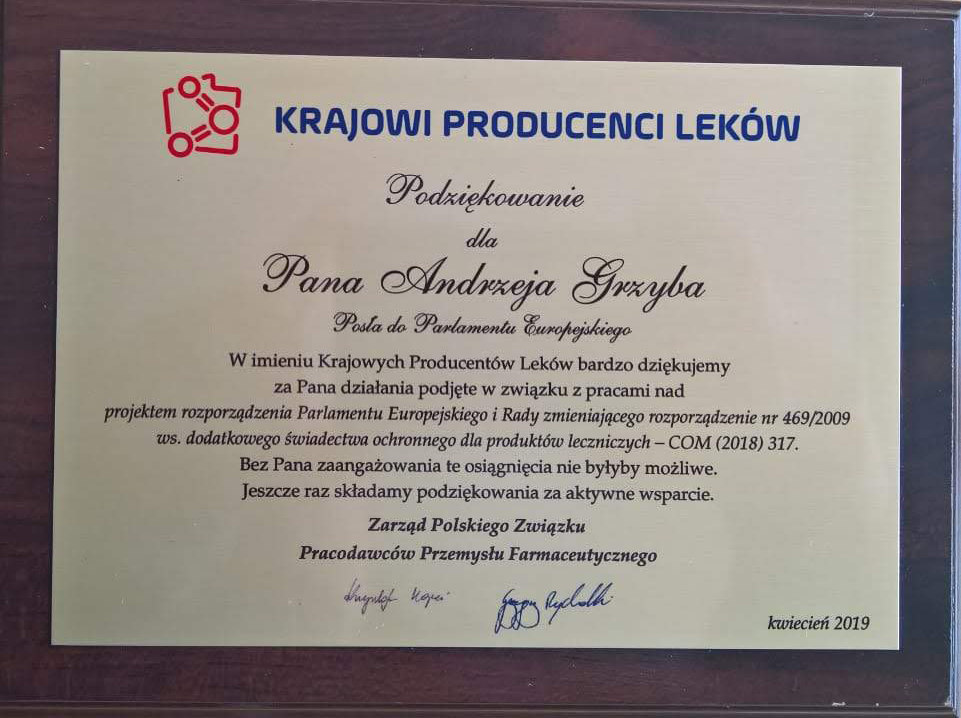 Andrzej Grzyb, europoseł, EPL (ENVI): Dbamy o prawo UE wyrównujące warunki konkurencji między producentami leków w UE, w tym w Polsce i poza UE. W obliczu dominacji na rynku globalnych koncernów, zmieniamy prawo UE, by nie dyskryminowało unijnych przedsiębiorców, by lepiej wspierać rodzimych, w tym polskich, producentów leków. Takie zmiany prawa UE to większa gwarancja lepszej dostępności leków w rozsądnych cenach w Polsce, ale i większe możliwości konkurowania naszych firm poza UE.