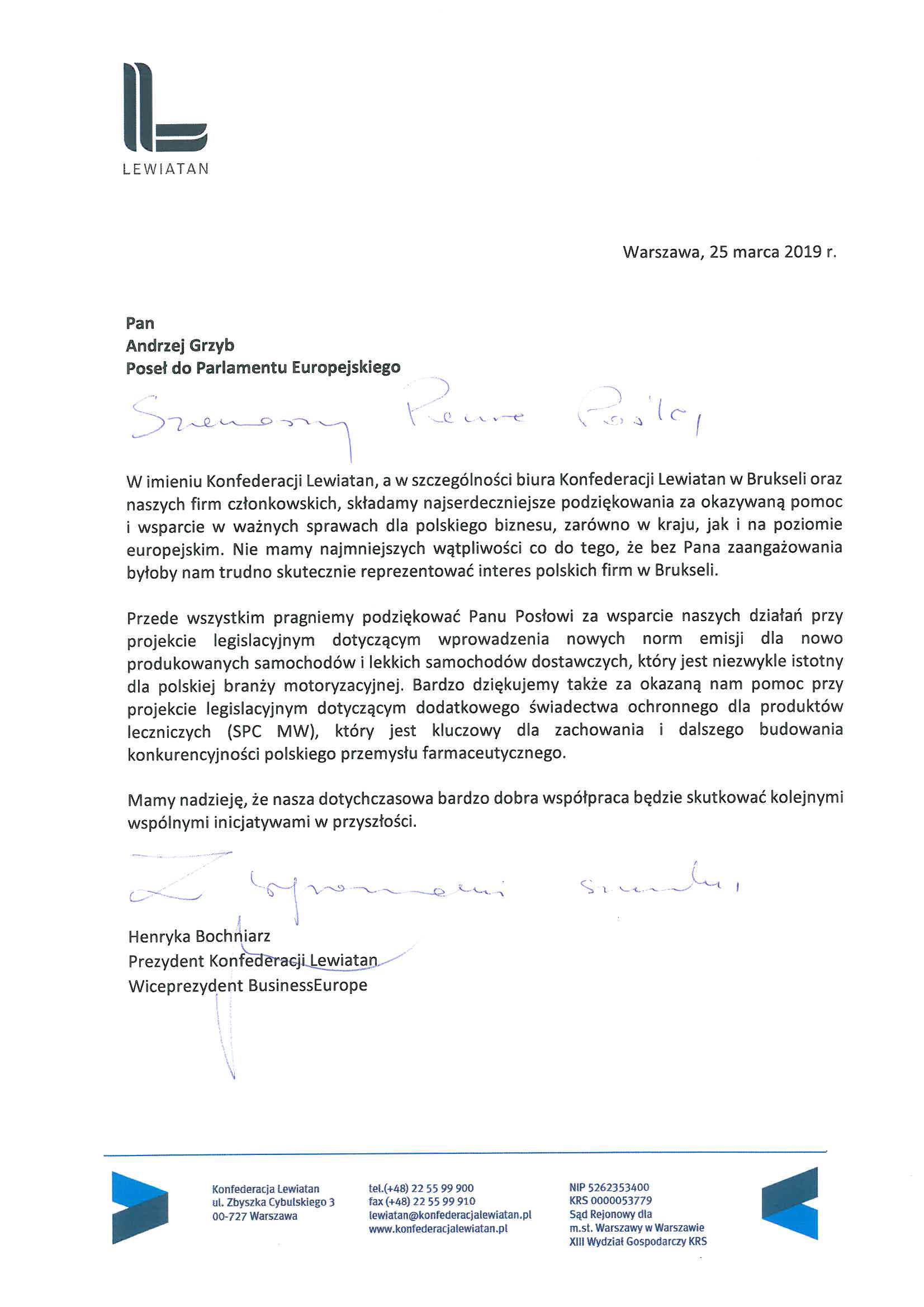 Artykuł Sukces Lewiatana i polskich pracodawców w sprawie produkcji leków – podziękowania za wsparcie dla posła Grzyba pochodzi z serwisu Andrzej Grzyb.