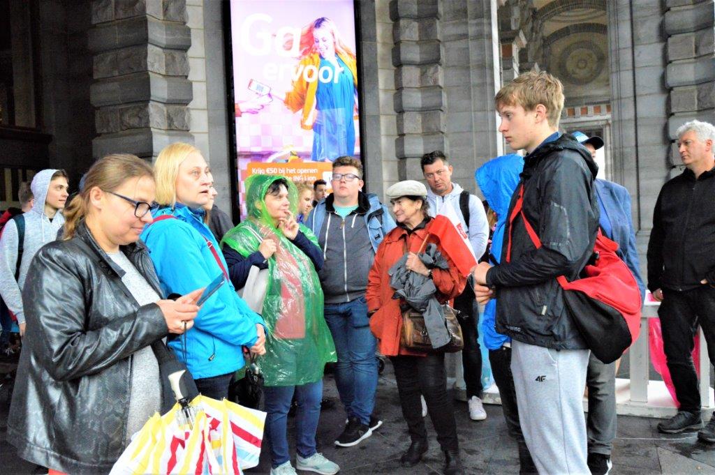 z panią przewodnik Marią Kozińską. Zwiedzanie urozmaicał nam deszczyk, który nie powstrzymał Nas, aby zobaczyć najważniejsze zabytki Brukseli i poznać najbardziej urokliwe zakątki „serca Europy”. W drugim dniu wyjazdu studyjnego wraz z panią Marią Kozińską pojechaliśmy na zwiedzanie pięknego miasta ANTWERPIA. Po czterech godzinach